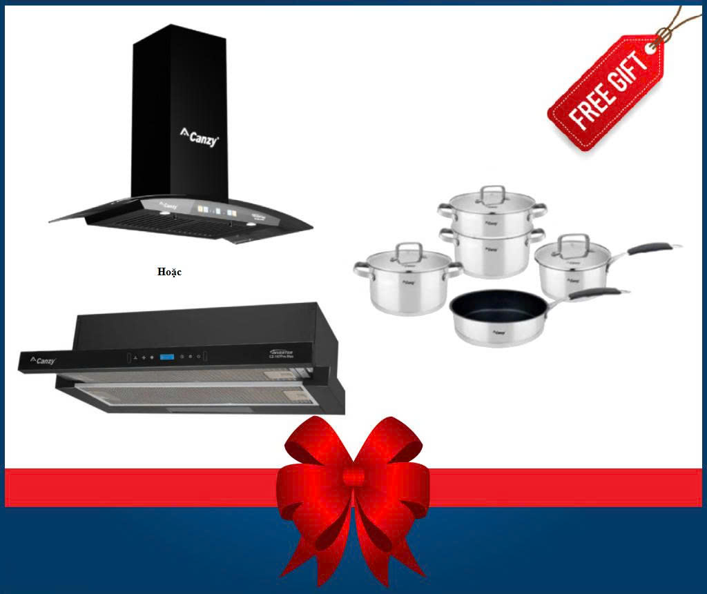 - Máy hút mùi kính cong Canzy CZ-NK270C hoặc Máy hút mùi âm tủ CZ-107 PROMAX