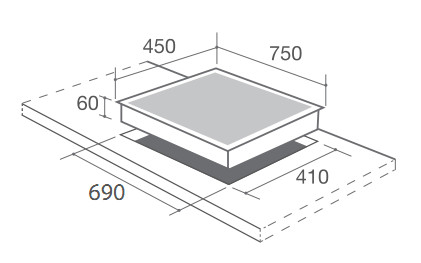 • Kích thước khoét đá: 690x410mm