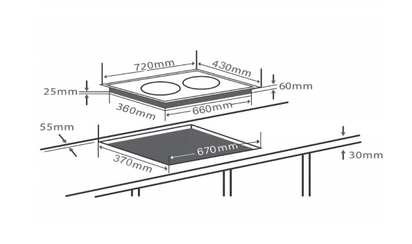 Kích thước khoét đá: 670 x 370 mm