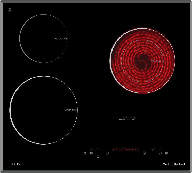 Bảo vệ quá nhiệt (cảm biến nhiệt độ tích hợp trong từng vùng nấu): Bếp điện từ Latino LT-03IRS được thiết kế cảm biến nhiệt độ dưới mỗi vùng nấu, khi có hiện tượng quá nhiệt ( nồi đun bị cạn, cháy,.. ) bếp sẽ chủ động ngắt công suất để đảm bảo an toàn cho thiết bị cũng như đảm bảo không sự cố đáng tiếc xảy ra.