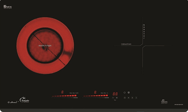 - Bếp gồm 1 vùng nấu từ 200mm, 1 vùng nấu hi-light 02 vòng