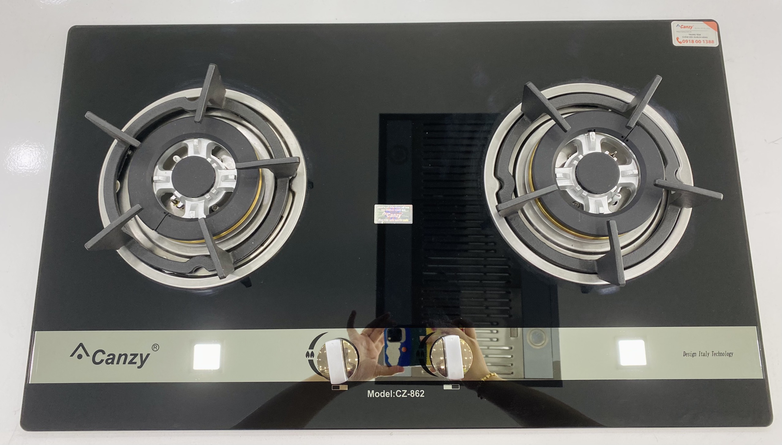 Bếp gas âm 2 lò Canzy CZ-862 mang thương hiêu của Canzy nhập khẩu nguyên chiếc về Việt Nam. Sản phẩm có thiết kế 2 vòng lửa có thể nấu được nhiều nồi khác nhau. Hệ thống chia lửa bằng đồng mạ Crom chất lượng cao với 2 phần có thể tách rời nhau thuận tiện cho việc vệ sinh bếp. Kiềng bếp bằng thép phủ sơn tĩnh điện, với thiết kế mặt kiềng có rãnh chống chơn trượt. Độ cao của kiềng thấp, ở phần giữa ngọn lửa nhằm tối ưu hóa lượng nhiệt năng tiêu thụ việc đun nấu trong gian bếp nhà bạn trở nên nhanh chóng và hiệu quả hơn bao giờ hết.