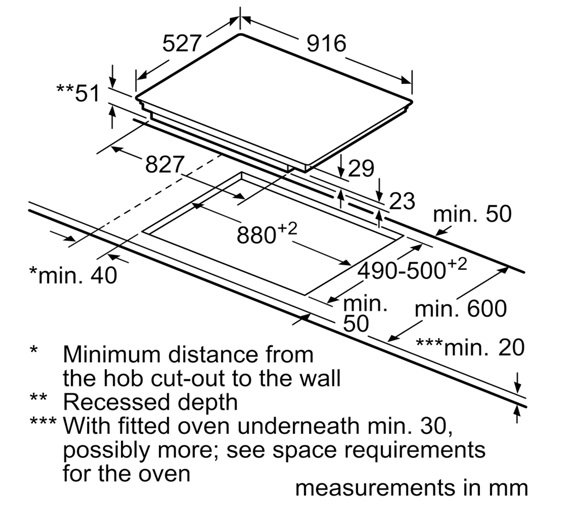 - Kích thước khoét đá (RxSxC): 880-882 x 490 x 51 mm