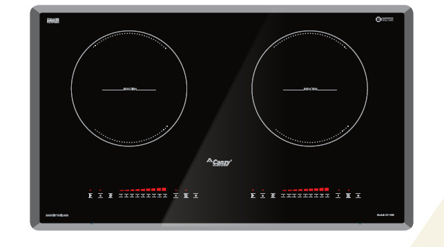 • Bếp đôi: 2 vùng từ sử dụng mặt kính Vitro Ceramic vát 4 cạnh bo góc sang trọng