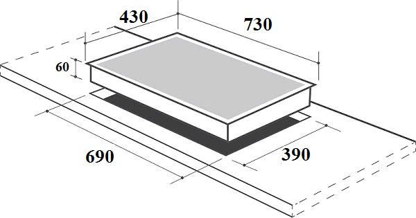 - Kích thước khoét đá: R690 x S390 (mm)