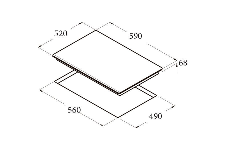 - Kích thước bếp: 590 x 520 mm