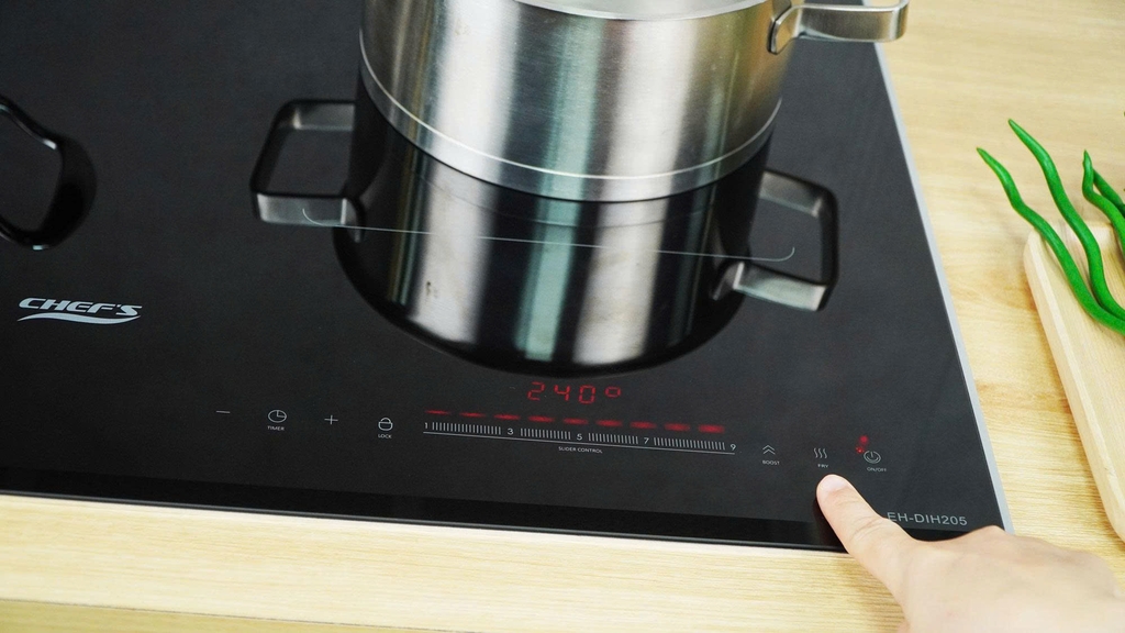 Chiên xào: Chỉ cần đặt chảo lên bếp và kích hoạt tính năng có sẵn, bạn sẽ dễ dàng xào rán được thức ăn ở mức nhiệt phù hợp theo cài đặt sẵn của bếp với mức nhiệt độ tùy chỉnh từ 60°C đến 240°C