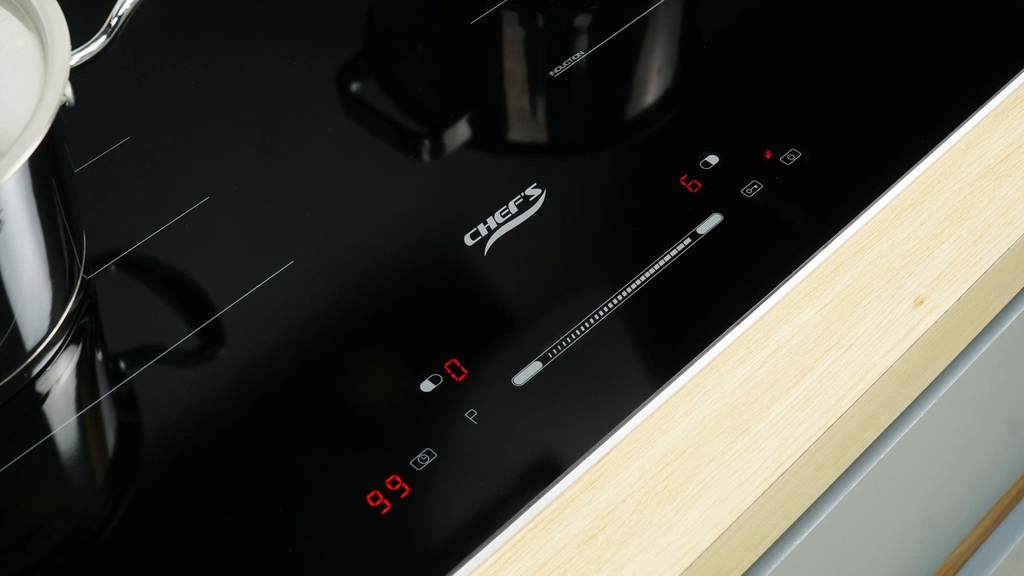 2 vùng nấu của bếp từ Chef’s EH-DIH208 được biểu thị bằng 5 đường kẻ ngang song song, tạo nên điểm khác biệt và độc đáo cho bếp.