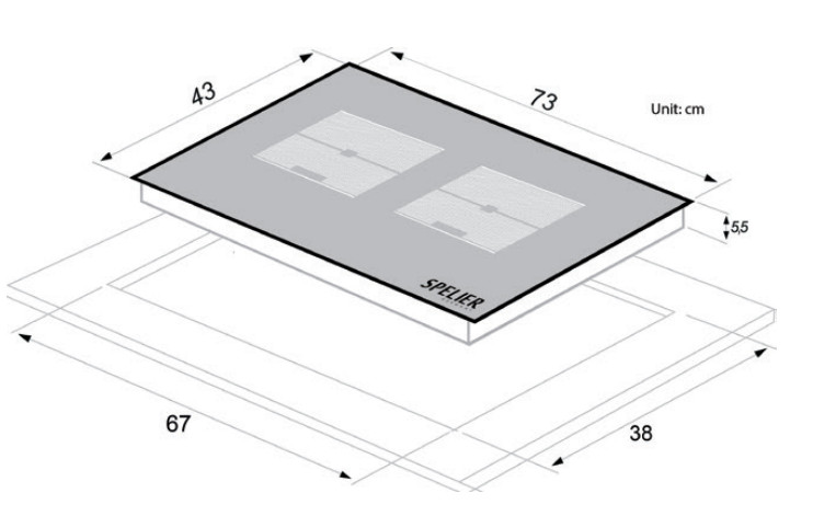 ► Kích thước bếp (D x R x C): 73 x 43 x 5,5 cm
