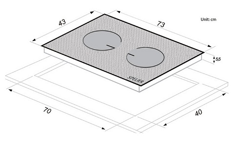 ► Kích thước bếp (D x R x C): 73 x 43 x 5,5 cm