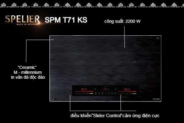 BẾP TỪ SPM-T71KS PLUS gồm 2 vùng nấu với tổng công suất là 4200W. Vùng nấu trái với công suất là 2200W khi kích hoạt tính năng nấu nhanh siêu tốc công suất lên tới Booster 2600W. Vùng nấu phải với công suất là 2000W khi kích hoạt tính năng nấu nhanh siêu tốc công suất lên tới Booster 2400W. Chức năng Booster nấu siêu nhanh, tuy nhiên thời gian tối đa mặc định dùng chức năng này là 10 phút/lần tránh quá tải.