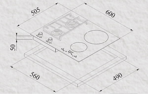 - Kích thước bếp: 600 x 505mm.