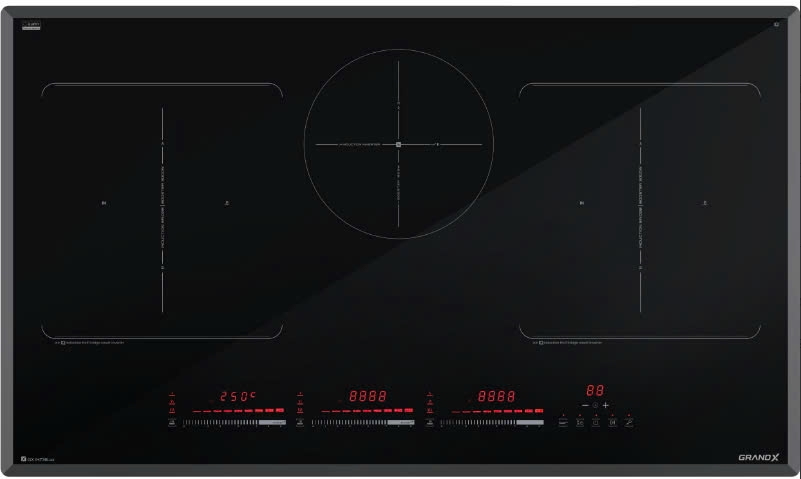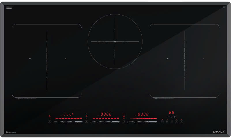 - Chức năng "Booster" 3 vùng nấu riêng biệt Max 3000W (lò giữa 1600W)
