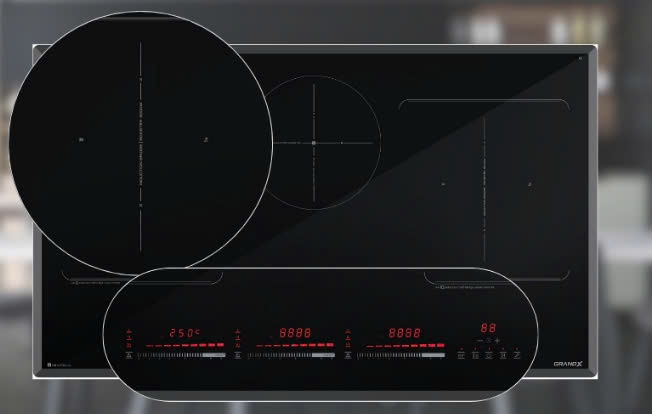 - Tự động phát hiện vùng nấu và vùng nấu chỉ nóng lên khi có nồi.
