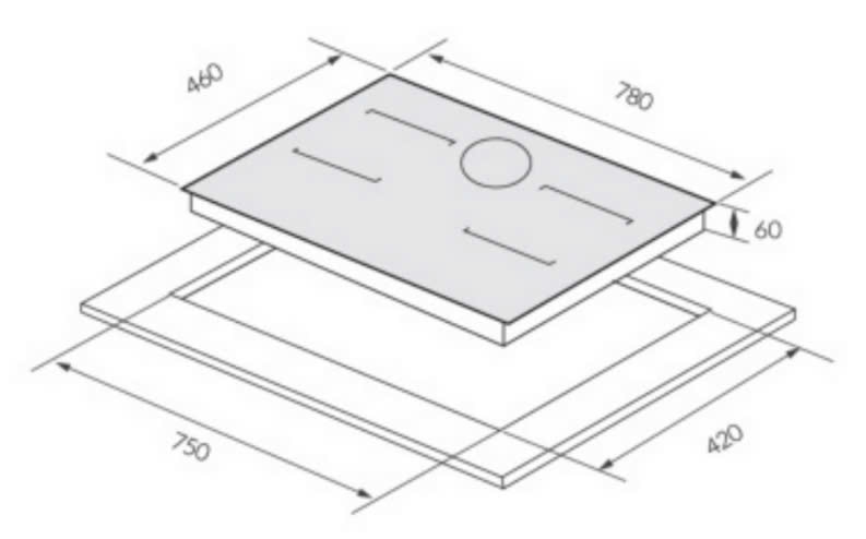 - Kích thước khoét đá: 750R x 420S mm