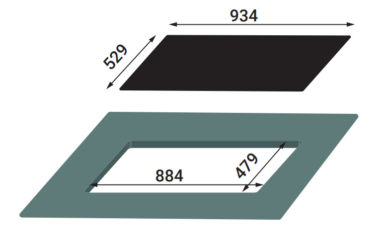 Chiều rộng 934 mm với khung thép không gỉ để lắp đặt bề mặt