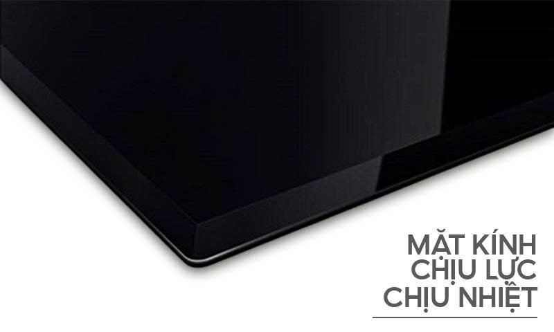 Bếp được trang bị mặt kính Keramik vát 4 cạnh, bo viền Aluminum siêu bền, chịu lực và chịu nhiệt tốt, dễ vệ sinh.
