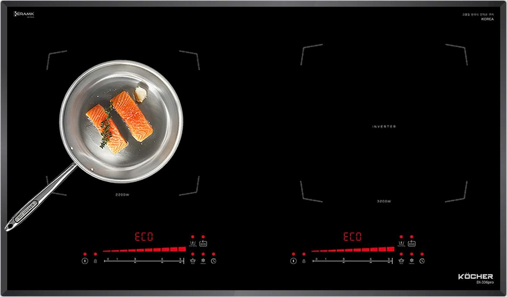 Bếp từ đôi Kocher DI-336 Pro xuất xứ Hàn Quốc, sử dụng linh kiện chính hãng, mặt kính Keramic chất lượng, tích hợp nhiều tính năng thông minh, đặc biệt có chức năng ECO giúp bếp luôn duy trì ở mức nhiệt ổn định, tiết kiệm hơn 30% điện năng.