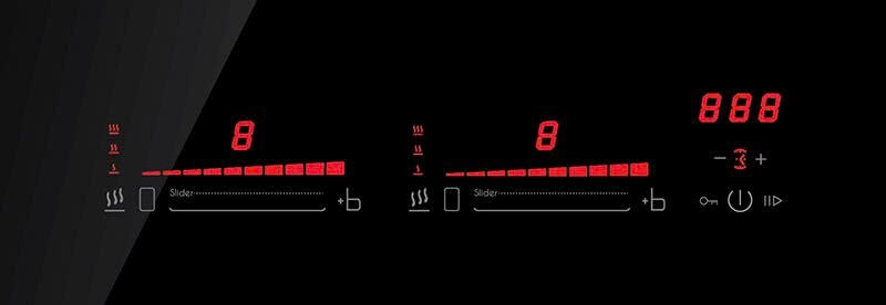 Đầu tiên, để có thể sử dụng bếp, bạn cần phải nhấn phím nguồn, bếp sẽ có 2 vùng nấu tương đương với 2 thanh slider.