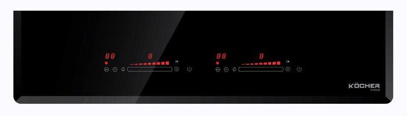 Bên ngoài vỏ bếp có lớp sơn cách điện, linh kiện cấu tạo sử dụng 100% linh kiện tập đoàn EGO (Đức). Bếp từ đôi Kocher DI-833GE IPlus có hệ thống điều khiển Slide cảm ứng dạng ẩn nhanh nhạy, tinh tế, hiển thị rõ các tính năng hiện đại, tiện dụng hơn cho người dùng.