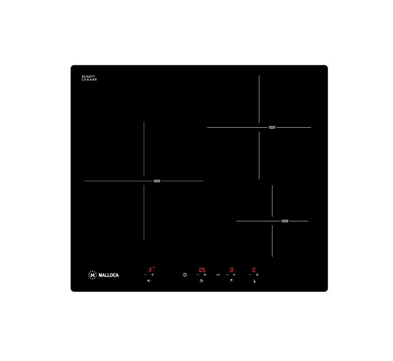 - Công suất từng vùng nấu: 3.6kW - 2.0kW - 1.6kW