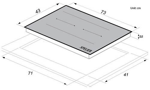 ► Kích thước bếp (D x R x C): 73 x 43 x 5,5 cm
