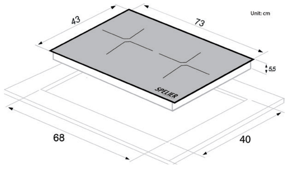 • Kích thước bếp (D x R x C): 73 x 43 x 5,5 cm