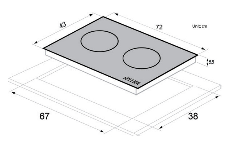 • Kích thước bếp (D x R x C): 72 x 43 x 5,5 cm