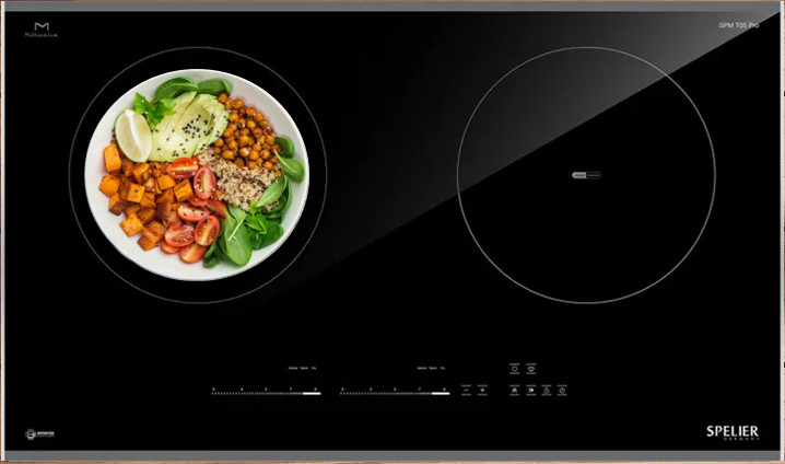 Bếp từ Spelier SPM-T05 PRO được tích hợp chức năng tự nhận diện vùng nấu, khi ta đặt nồi lên 1 trong 2 vùng nấu sau đó ấn nút khởi động bếp sau thời gian 1-2 giây bếp sẽ tự động tìm vùng nấu đã có nồi, ta chỉ việc điều chỉnh mức công suất to nhỏ theo ý muốn mà không phải thao tác chọn vùng nấu như bếp thông thường. Công nghệ Dual core Inverter được áp dụng trên bếp từ Spelier SPM-T05 PRO có khả năng phản ứng thay đổi công suất theo điều khiển ngay tức thì, khi người dùng điều chỉnh tăng giảm nhiệt độ đun nấu, bếp điều chỉnh thay đổi tức thì về mức nhiệt độ mong muốn