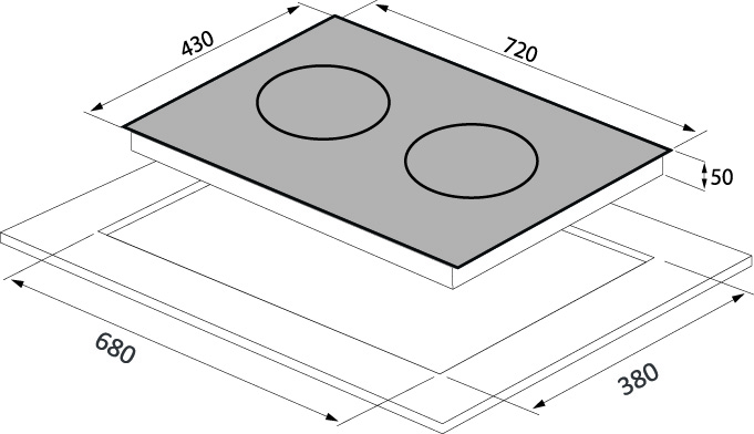 Bếp từ âm kính 2 vùng nấu đường kính 220mm