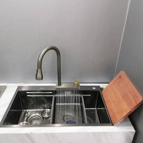 Chậu rửa chén bát 1 hố to kèm 1 hố phụ tháo rời được B-GEM BG-7846 NEW chứa được nhiều chén bát hơn nhờ có thêm 1 hố phụ ( có thể tháo rời ). Với kích thước từng hố lớn lên tới 780x460mm. Bạn có thể đặt chén, bát, đĩa một hố và ly, cốc, tách ở hố còn lại. Bề mặt chậu được phủ một lớp nano màu xám ghi, giúp sản phẩm sang trọng hơn. Ngoài ra chậu rửa chén bát BG-7846 NEW còn được làm hoàn toàn bằng inox. Giúp tuổi thọ của sản phẩm cao hơn, chống gỉ sét tốt hơn so với các sản phẩm cùng phân khúc.