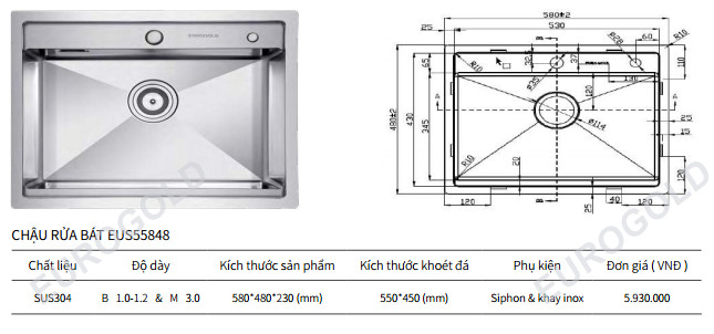 Kích Thước Khoét Đá: 550*450 (mm)