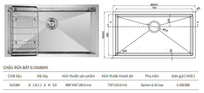 Kích Thước Sản Phẩm: 800*450*230 (mm)