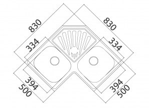Chậu rửa Inox Magic S02-A1 kiểu chậu góc 2 hộc và 1 bàn ở giữa, lắp sát trên mặt đá.