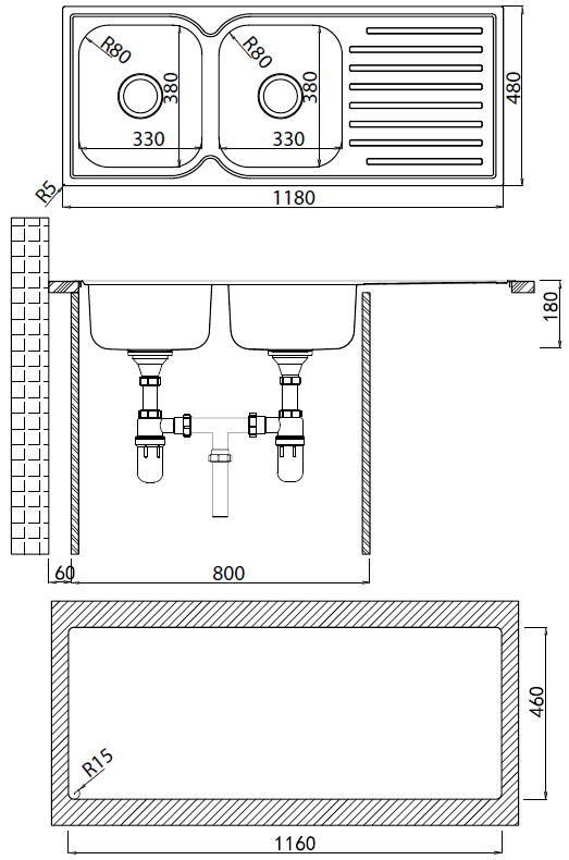 + Kích thước mỗi bồn: 330R x 380S mm