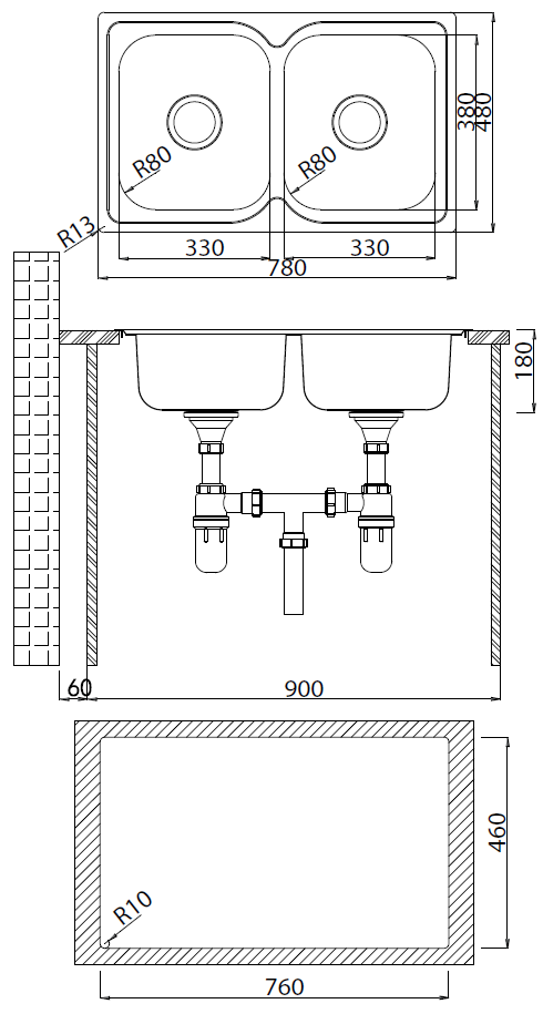 + Overal dimensions: 780W x 480D mm