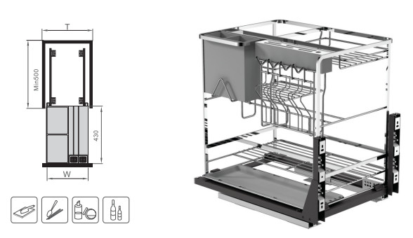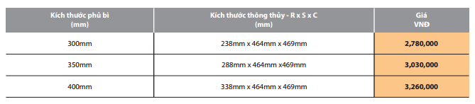 Kích thước sản phẩm (mm): Rộng x Sâu x Cao: W338 x D464 x H469