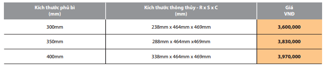 Kích thước sản phẩm (mm): Rộng x Sâu x Cao: W338 x D464 x H469
