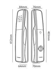 Kích thước thân khóa ngoài: R 84 x C 412 x D 64 mm