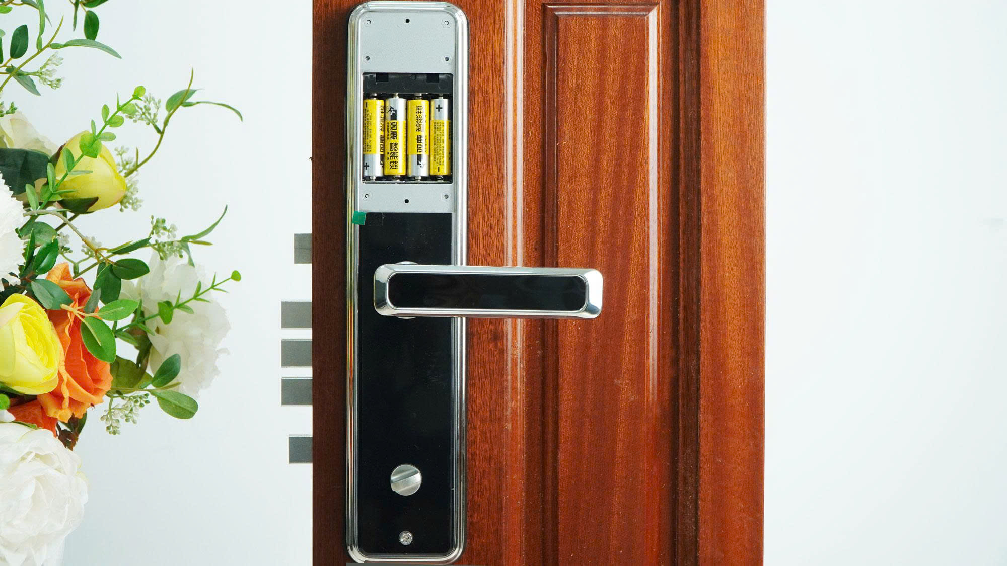 Khóa sử dụng 4 cục pin nhỏ, có thể thay thế bằng pin con thỏ hoặc các loại pin khác có kích thước tương đồng. Hộp pin dễ dàng tháo lắp, thay thế khi cần.