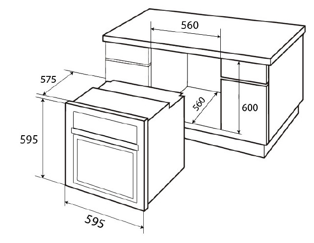 - Kích thước khoét đá: 600C x 560R x 560S mm