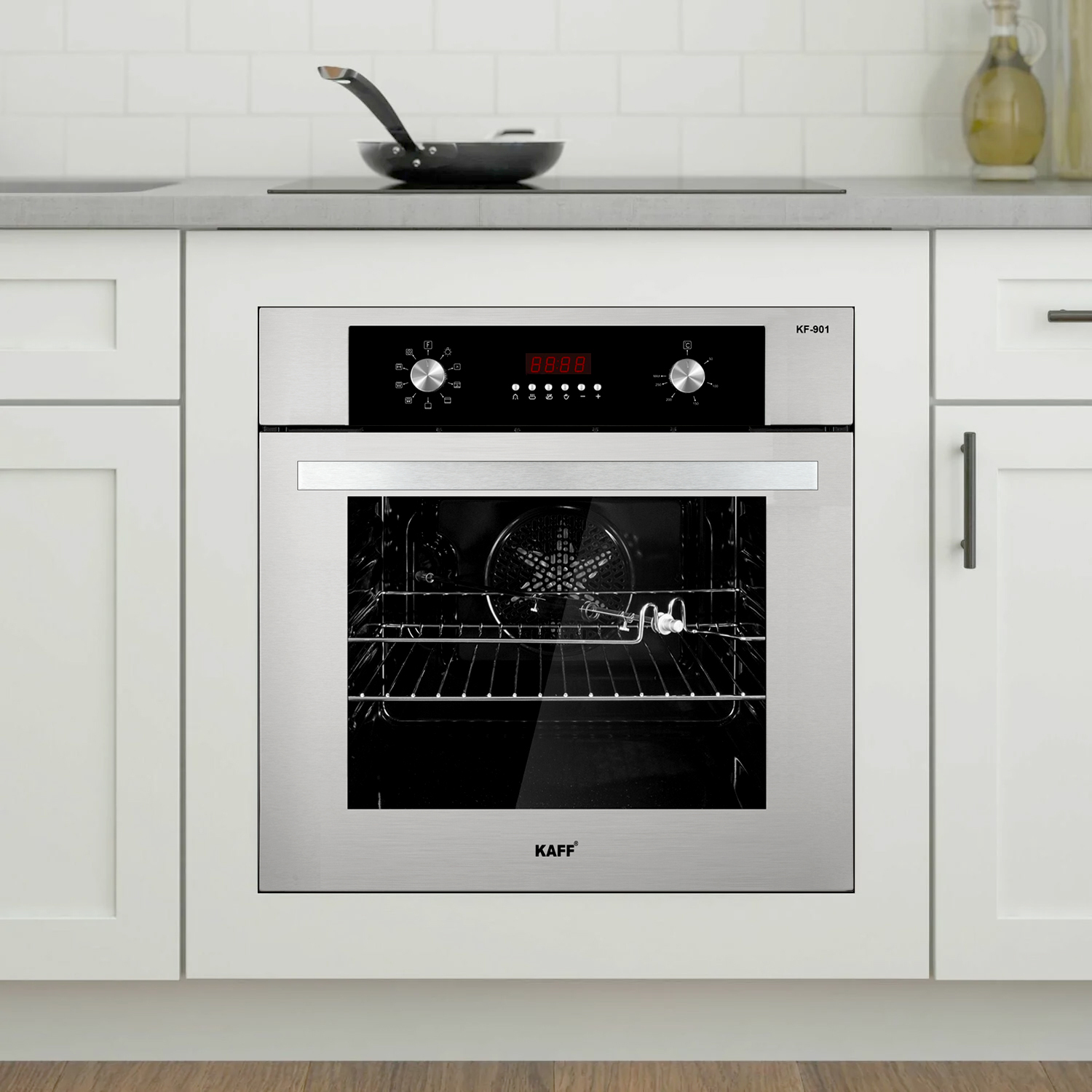 Lò nướng Kaff KF-901 có thiết kế theo phong cách Châu Âu hiện đại, với phần thân máy làm từ chất liệu inox sáng bóng phối với mặt kính cường lực màu đen tạo điểm nhấn cho không bếp thêm phần sang trọng và đẳng cấp. Thiết bị còn được thiết kế lắp đặt âm tủ rất tiện lợi và gọn gàng, không mất nhiều diện tích sử dụng.