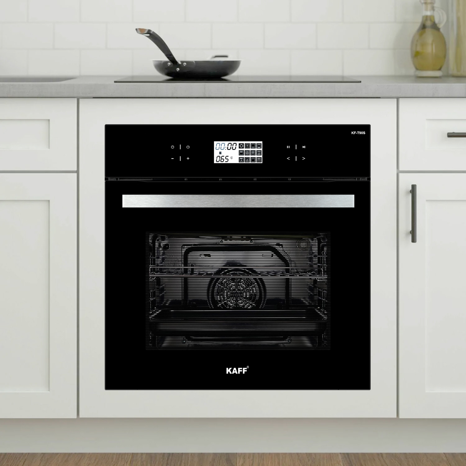 Lò nướng âm tủ KAFF KF-T90S có thiết kế đẹp mắt, điều khiển cảm ứng TFT với màn hình sắc nét. Lò được thiết kế bề mặt kính cường lực 3 lớp, chịu lực chịu nhiệt, chống tia UV. Sản phẩm mang một nét đẹp thanh lịch theo phong cách Châu Âu.