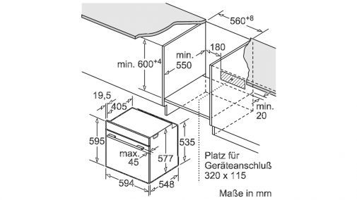 Kích thước lắp đặt (C x R x S): 585 - 595 x 560 - 568 x 550 mm