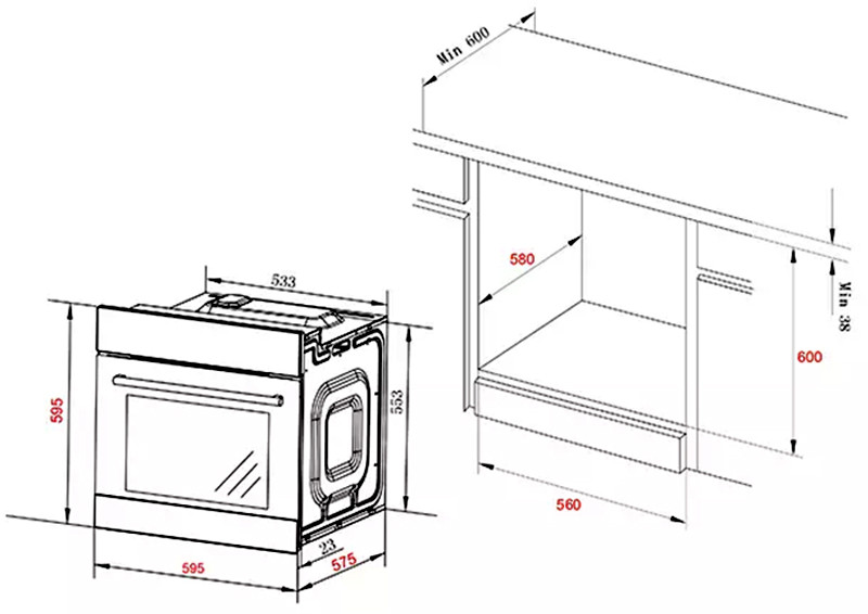 - Kích thước âm tủ: R560 x S580 x C600 mm