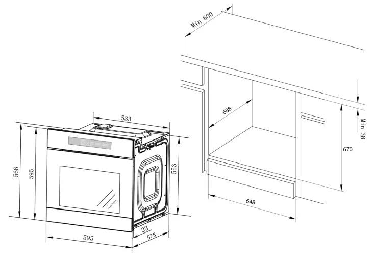► Kích thước máy để âm tủ (RxSxC): 64,8 x 68,8 x 67,0 cm