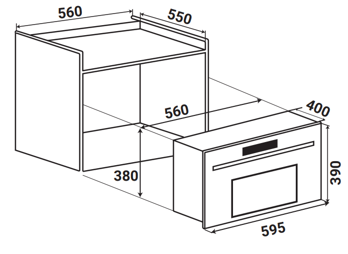 + Kích thước cắt hộc tủ: 380C x 560R x 560S mm