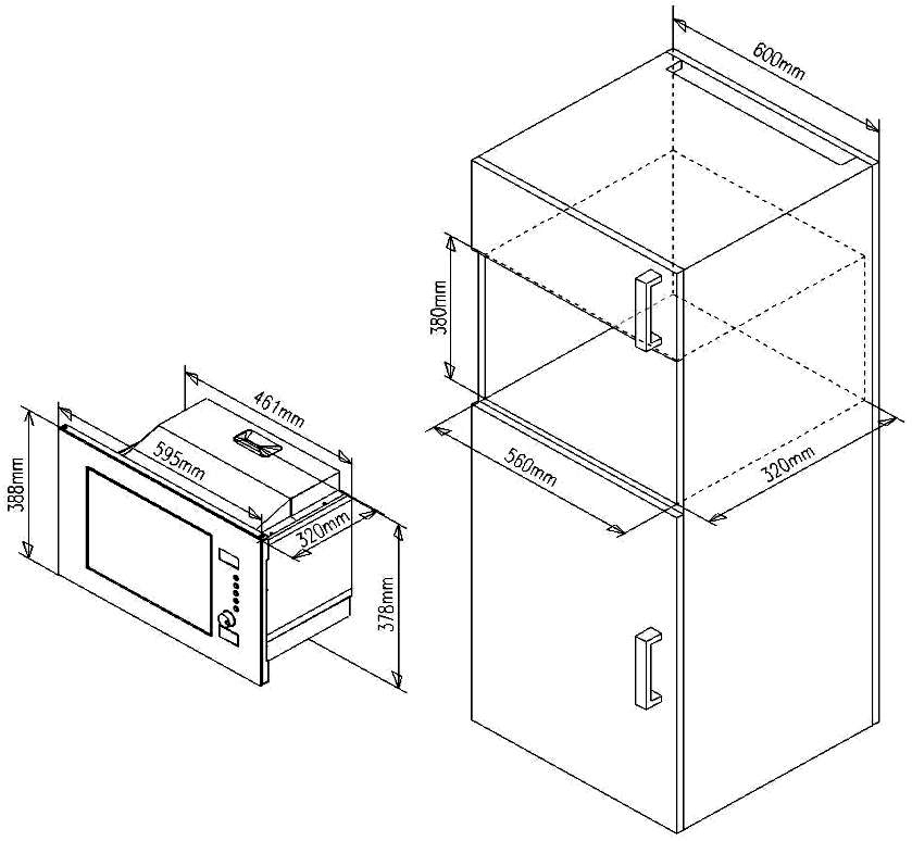 - Kích thước âm tủ (R x S x C): 560 x 320 x 380 mm