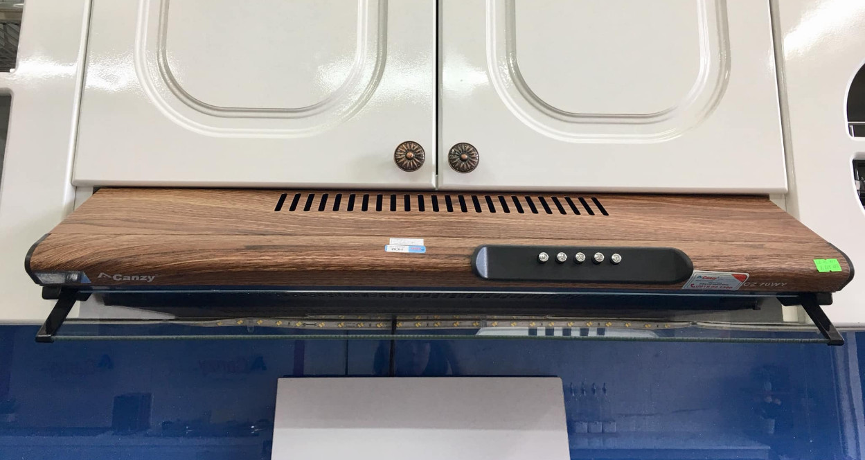 Máy hút mùi Canzy CZ-70WY được làm bằng thép phủ sơn vân gỗ màu vàng, có bộ lưới lọc mỡ bằng nhôm 3 lớp, cùng 3 tốc độ hút mùi tùy theo món ăn có mùi và lượng khói tạo ra khác nhau mà chọn tốc độ hút cho phù hợp.