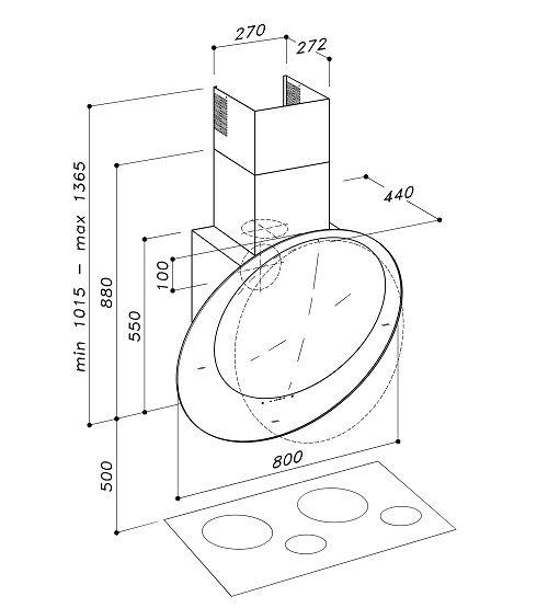 Máy hút mùi áp tường trang trí hình tròn, kết hợp giữa chất liệu thép không gỉ, kính trắng và hợp kim sắt cao cấp được phủ lớp sơn đặc biệt.